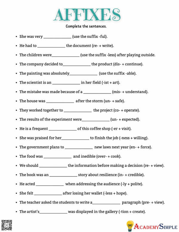 Affixes also help us understand the parts of speech. By recognizing the suffixes, we can tell whether a word is a noun, verb, adjective, or adverb. For example, “-ment” at the end of a word often turns it into a noun, such as in “enjoyment” or “development.” Similarly, the suffix “-ful” turns nouns into adjectives, like “hopeful” or “beautiful.”