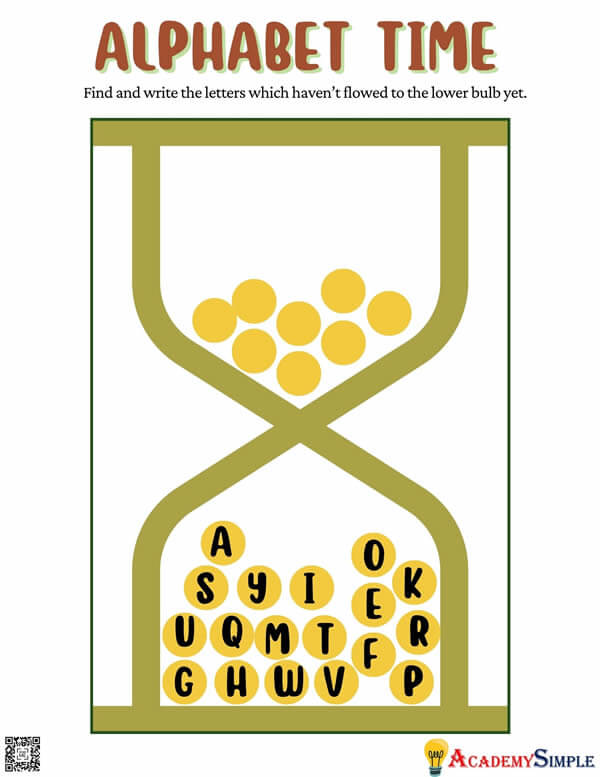 This alphabet worksheet with the letters in an hourglass is fun for kids and a great tool to practice their knowledge of the letters in the alphabet.