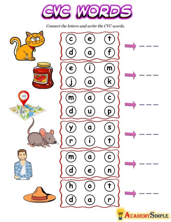 CVC words are easy to read for children as they simply need to blend the sounds of individual letters together. We can say that it is the transition from learning the sounds of letters to sounding out simple words.