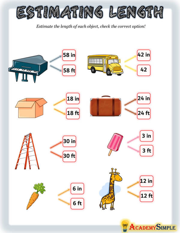 Units of Length Worksheet, Estimating Length- Inches or Feet #3
