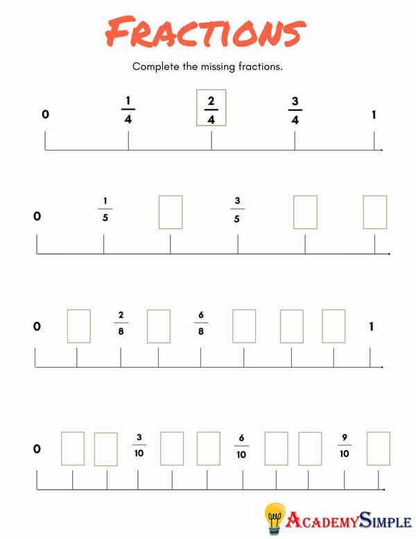Example: To show 1/4, divide the space between 0 and 1 into 4 equal parts. Count one part from 0, and that’s where 1/4 goes!
