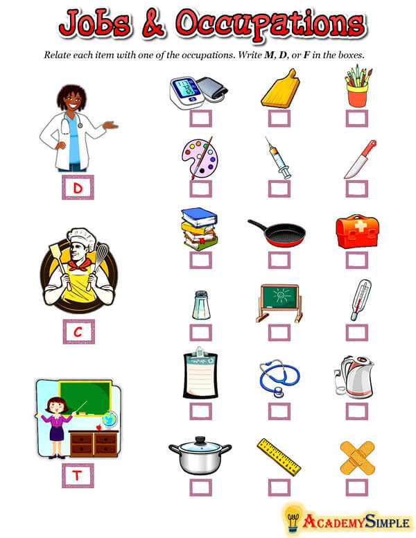 Jobs and Occupations- Matching Worksheet