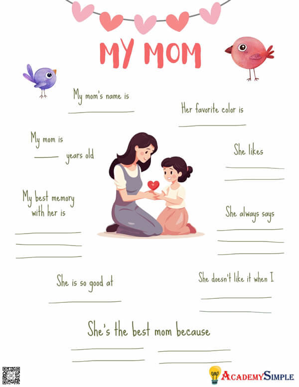 How Well Do You Know Your Mom? This worksheet is planned to help strengthen the bond between moms and kids.