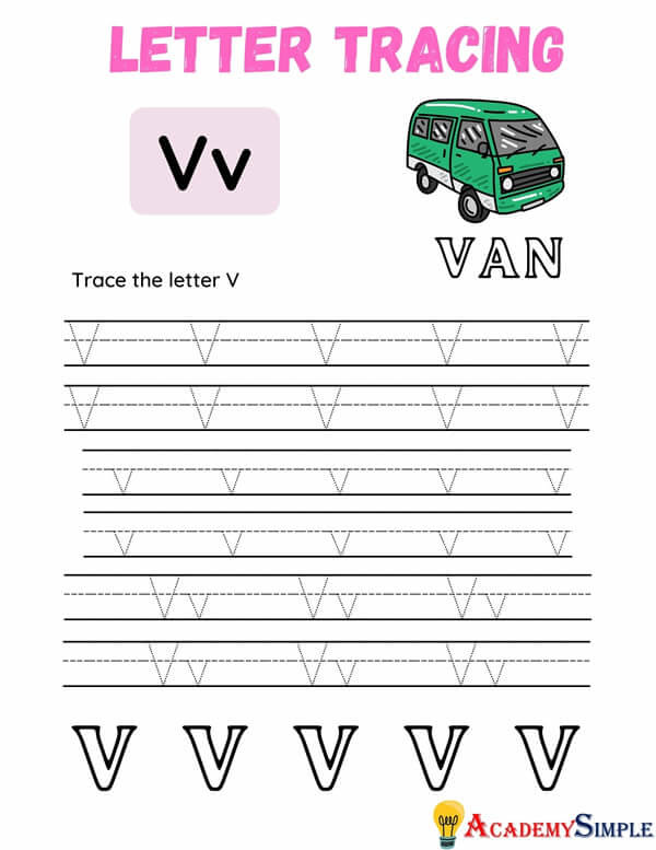 Letter Tracing Worksheet – Trace the Letter V