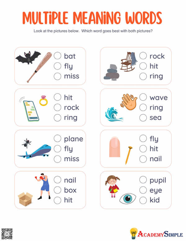 Learning about multiple-meaning words makes reading and writing more exciting. Next time you come across a word that seems to have more than one meaning, think of it as a mystery to solve.