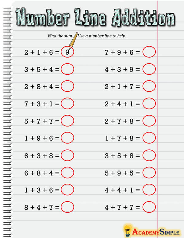 Sums of three natural numbers: When adding 3 natural numbers, we add 2 numbers first. Then we add the total number with the 3rd number and find the result. Now let’s do an example and learn how to add three natural numbers.