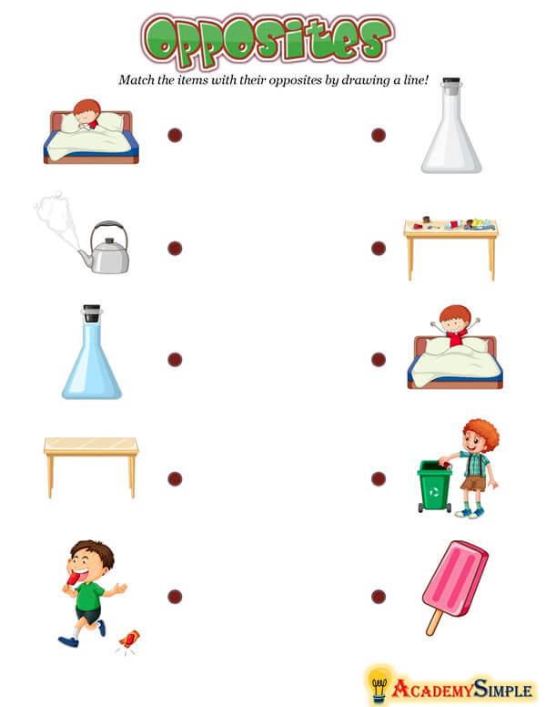 Opposites are things that directly contrast each other. For instance, “big” is the opposite of “small”. Children can better describe and compare two different things once they learn the concept of opposites.