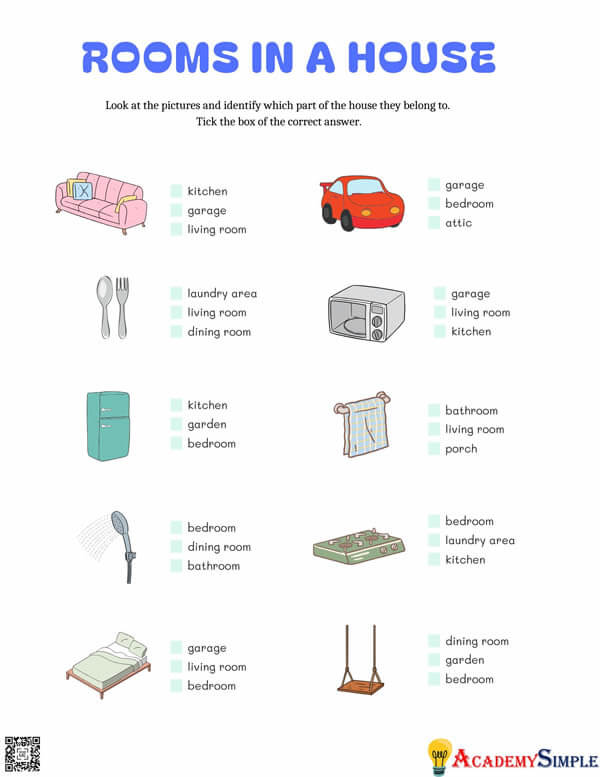 To make learning fun, try interactive activities. You can have children match pictures of furniture to the correct room. Or play a game where they name items in each room. Another great way to teach is by taking them on a tour of their own home. Show them how each room works and point out the furniture and its purpose.