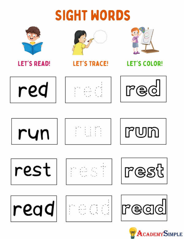 Practicing a lot is the key point in learning sight words. Worksheets and flashcards are a great help to boost children’s knowledge of sight words.