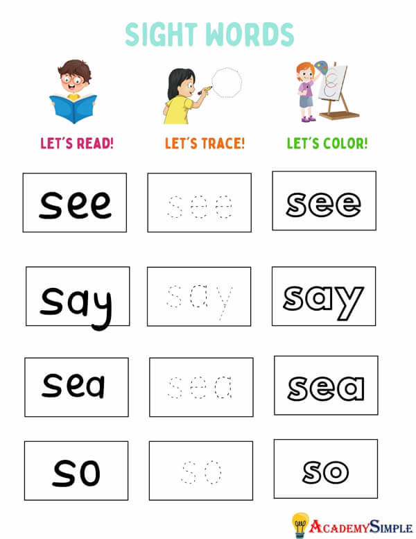 Practicing a lot is the key point in learning sight words. Worksheets and flashcards are a great help to boost children’s knowledge of sight words.
