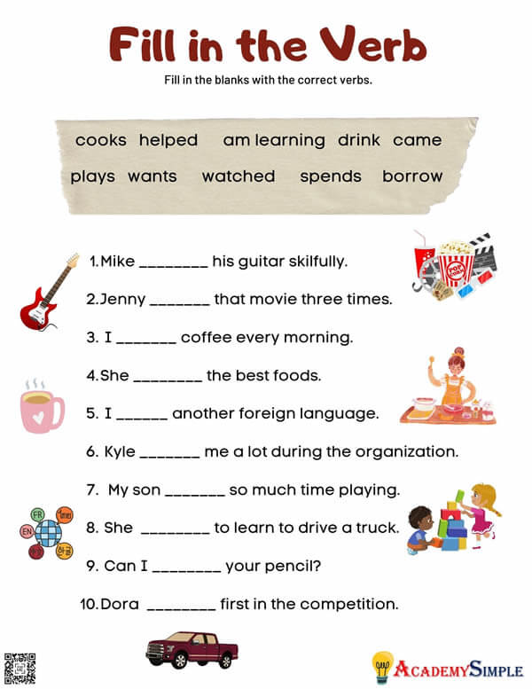Verbs in English, Verb Words Worksheet Verbs can be expressed as words that indicate an action in a sentence. The…