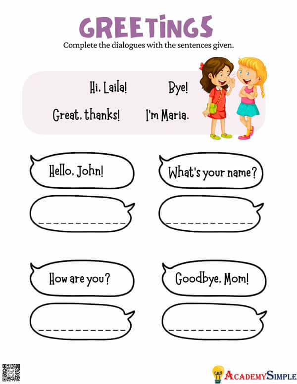 'Complete the Dialogue' Worksheet, Simple Greetings Sentences Using greetings expressions is important for several reasons: 1. Creating a positive atmosphere:…