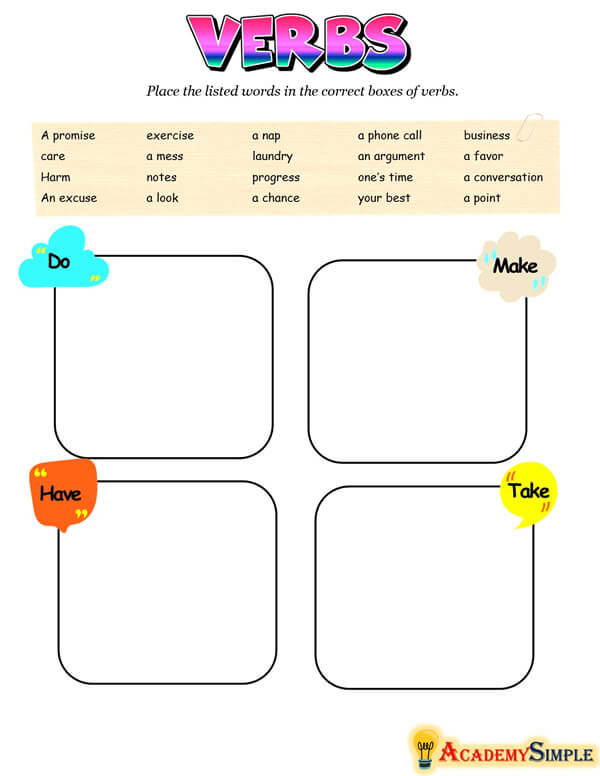 We can divide verbs into different categories according to many features. According to their content, namely their meanings, we can examine the verbs under three headings: action, linking and helping verbs.
