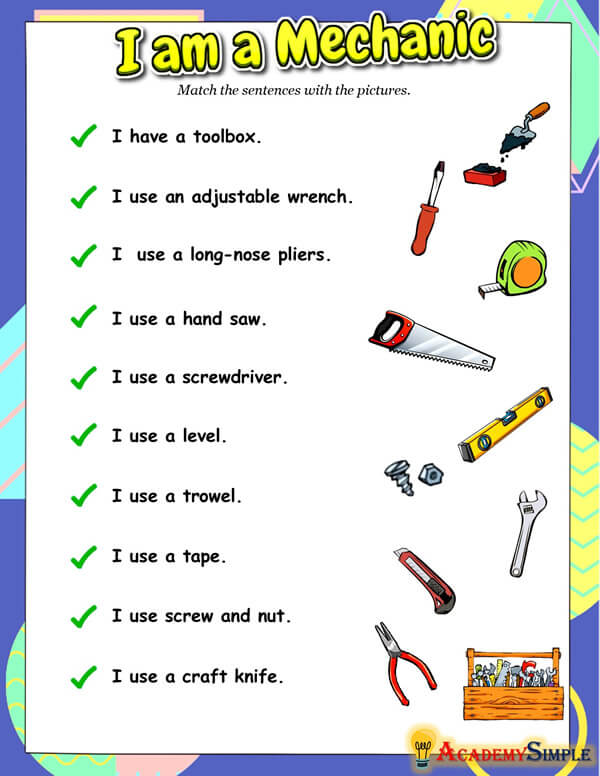 English Words & Vocabulary Worksheets, Occupations – Mechanic